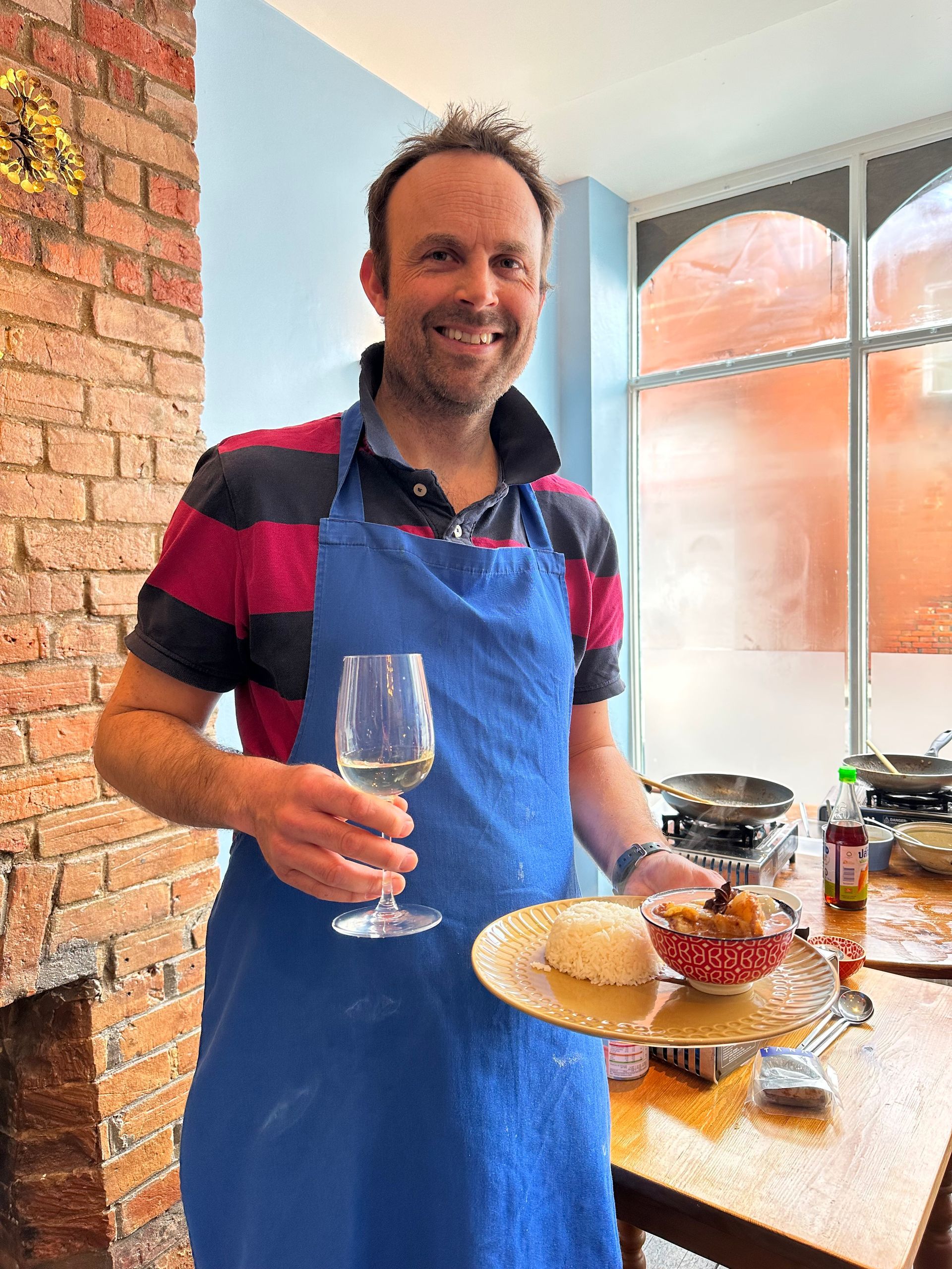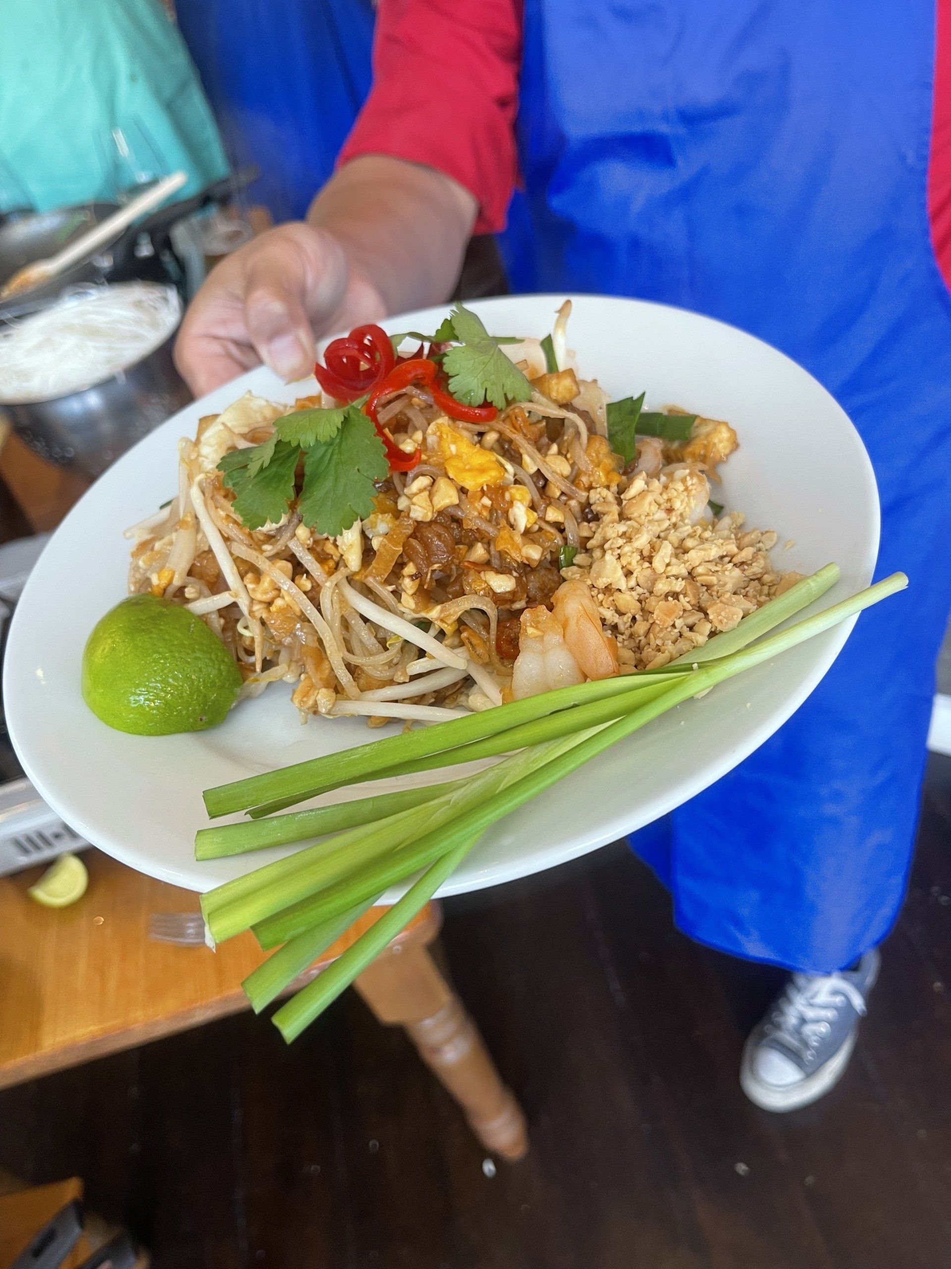 Afterwards, you’ll sit down at the restaurant’s feasting table to enjoy the meal you’ve created, along with a glass of wine or Thai beer.